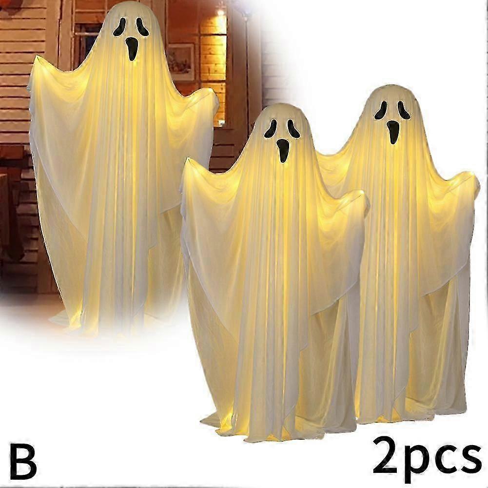 Outdoor Halloween Decorations 2 Glowing White Fabric Ghosts, Perfect for Party