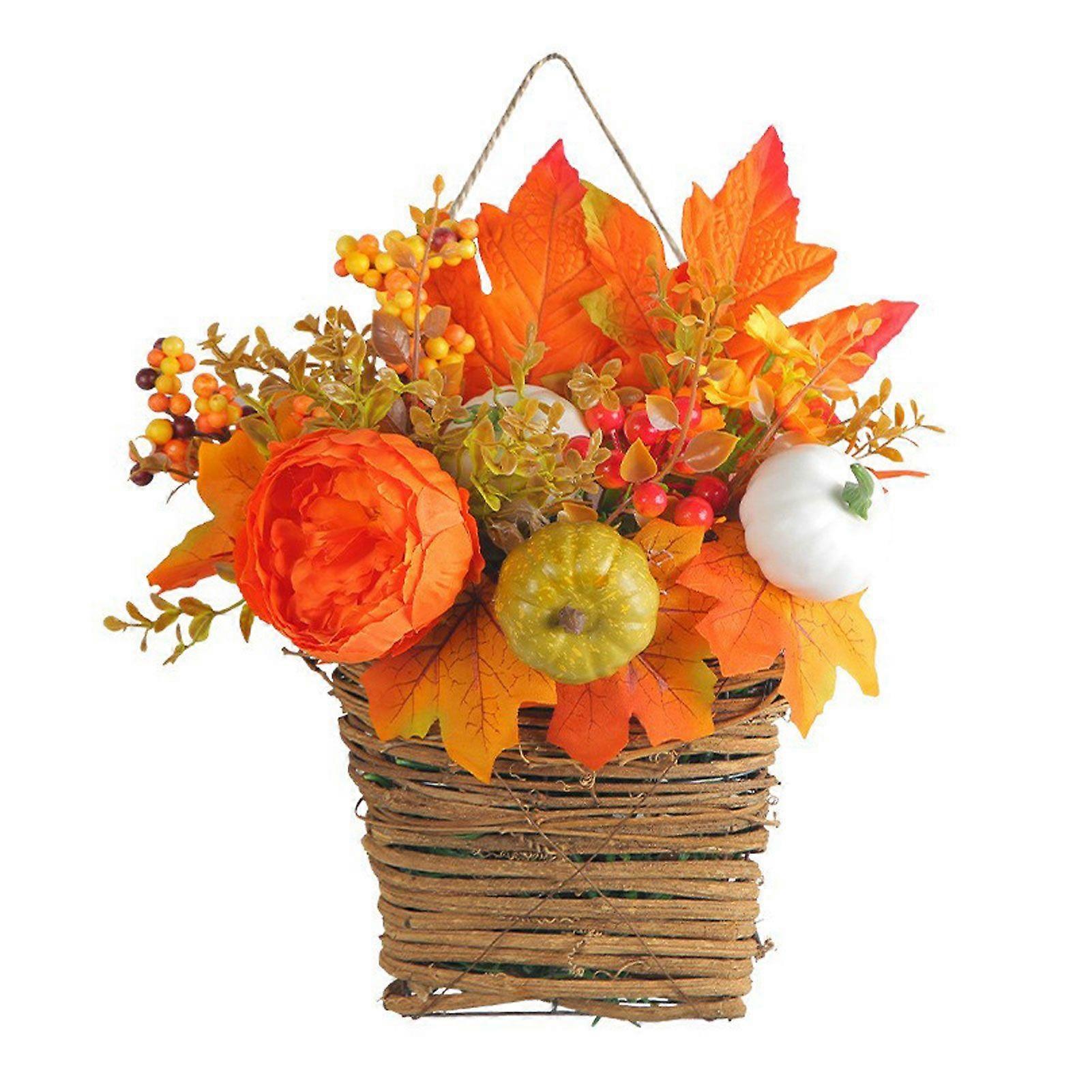 Festival Pumpkin Flower Basket Golden Maple Leaves Simulation Flower Basket Hanging Patio Decorations