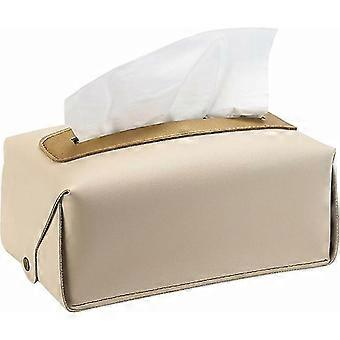 Caja de pañuelos, Caja de pañuelos decorativa, Caja de pañuelos rectangular, Dispensador de pañuelos de papel, Caja de almacenamiento de pañuelos creativos, Colgante, Beige, Cuero, 12x24x8cm