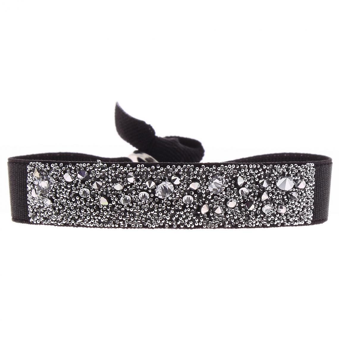Bracelet Les Interchangeables A36458 - Bracelet Tissu Noir Cristaux de haute qualité Femme