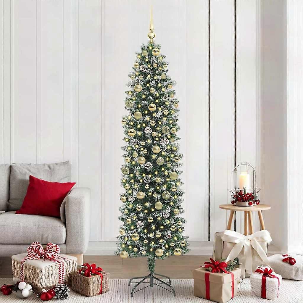 Künstlicher schlanker Weihnachtsbaum Grün und Weiß 210 cm