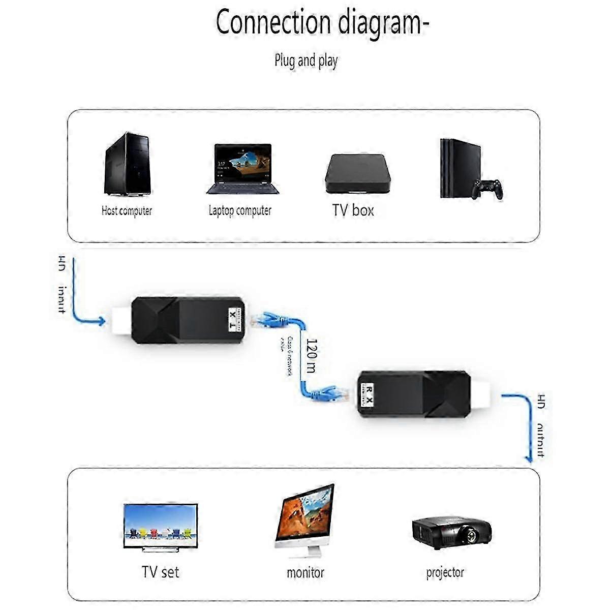 -Compatible 120M Video Network Extender Signal Transmission Extender HD Video Transmission Lossless