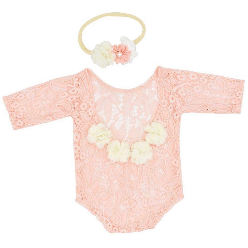 1 Set Newborn Baby Girl Romper and Headband Pink Lace Dress Bodysuit Outfits
