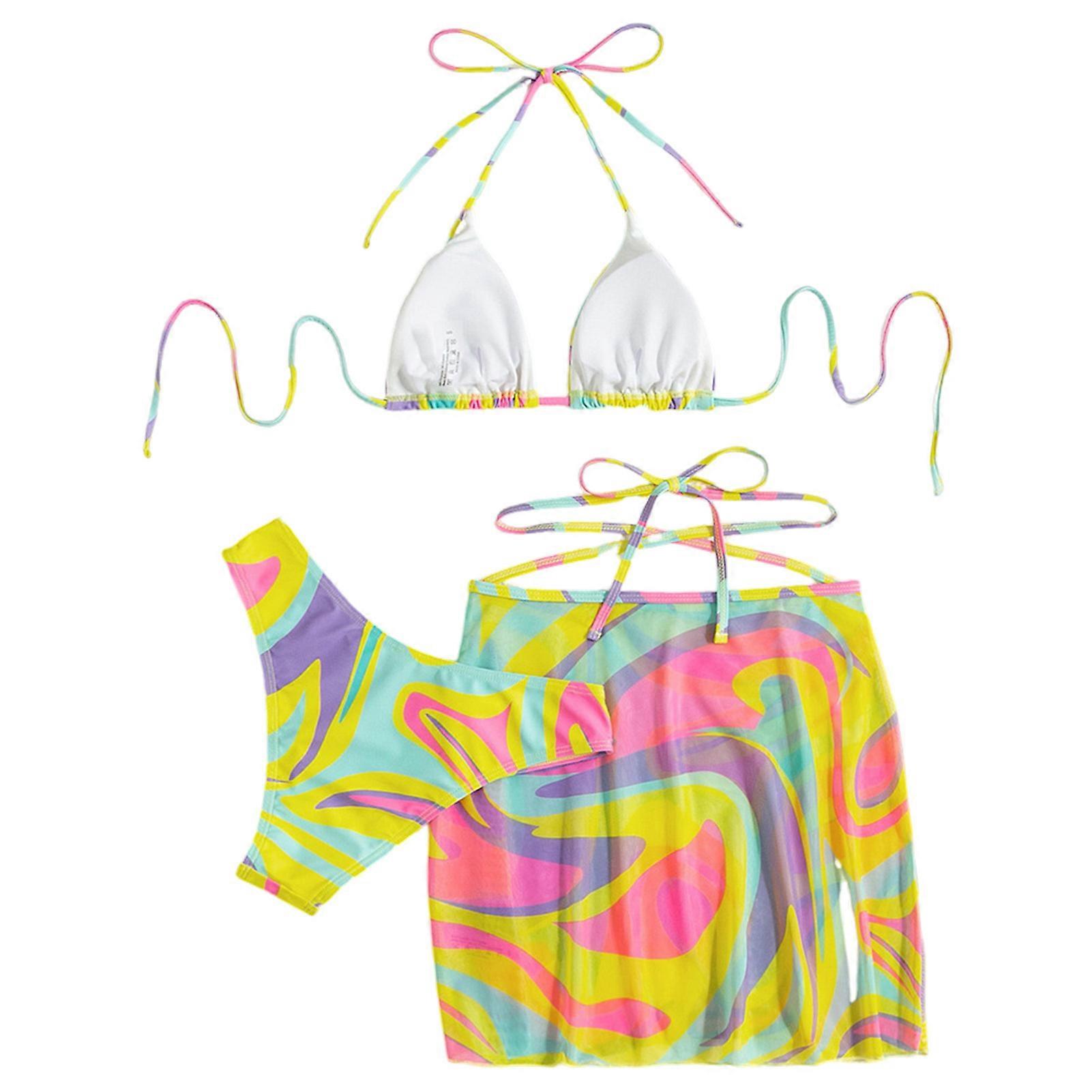 Features: Stylish 3-Piece Set: This women's 3 pieces swimsuit includes a trendy halter top, high-waisted swim panties, and a chic wrap skirt, ensuring you look fabulous at the beach or poolside. Floral Design: Featuring a beautiful floral print, this women's 3pcs bikini swimsuit set adds a touch of elegance to your summer wardrobe, making it perfect for vacations and sunny days. Comfortable Fit: Designed for all-day wear, this comfortable swimwear offers a flattering fit with soft, breathable fabric that allows for easy movement during beach activities or swimming. Versatile Use: Ideal for various activities, this swimsuit set is perfect for beach swimming, pool parties, or even running by the shore, making it a must-have for active women and girls. High-Waisted Style: The high-waisted swim panties provide extra coverage and support, while the wrap skirt adds a stylish layer, making this set both functional and fashionable for summer fun. Specifications: Material: Polyester Size,Top Length,Bust,Bottom Waist,Bottom Length,Skirt Length,Skirt Waist S,17.5cm,88cm,68cm-94cm,23cm,36cm,66cm M,18.5cm,92cm,72cm-98cm,24cm,37cm,70cm L,19.5cm,97cm,77cm-103cm,25cm,38cm,75cm XL,20.5cm,102cm,82cm-108cm,26cm,39cm,80cm Note: Due to the screen lighting effect, the actual color of the product may be slightly different. Due to manual measurement, please allow size error. Include: 1*Top 1*Bottom 1*Skirt