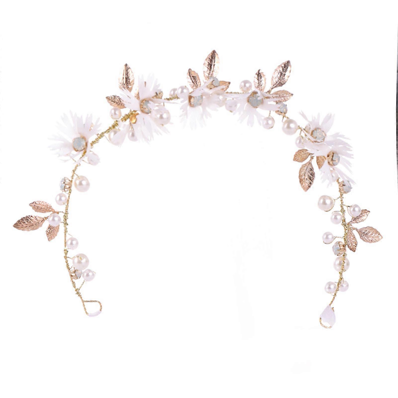 Features: Elegant Bridal Hair Jewelry: This exquisite headband features an elegant white flower design adorned with imitation pearls, adding a touch of sophistication to any bridal ensemble. Versatile Hair Accessory: This headband is perfect for weddings, parties, or everyday wear, making it a versatile and timeless addition to any woman's hair accessory collection. Comfortable and Secure Fitting: The headband is designed for a comfortable and secure fitting, ensuring it stays in place throughout the day and night, so you can focus on enjoying the special occasion. Thoughtful Gift for Women: This elegant headband makes a wonderful gift for brides, bridesmaids, or anyone who appreciates quality, timeless hair accessories. Adjustable Ribbon Closure: The headband features an adjustable ribbon closure, allowing for a customizable fit and ensuring it complements any hairstyle with ease. Specification: Material: Alloy, faux pearl Type: Bride supplies Size: 30*3.5 cm Note: 1. Please allow 1-3cm differs due to manual measurement. 2. Due to the different display and different light, the picture may not reflect the actual color of the item. Thanks for your understanding. Include: 1 * Hairband