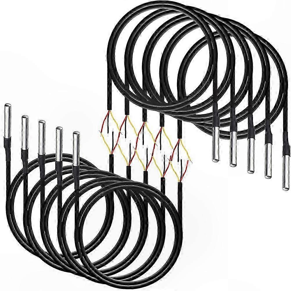 10-Pack Water-Resistant Digital Temperature Sensors with Cable, -55°C to +125°C Range