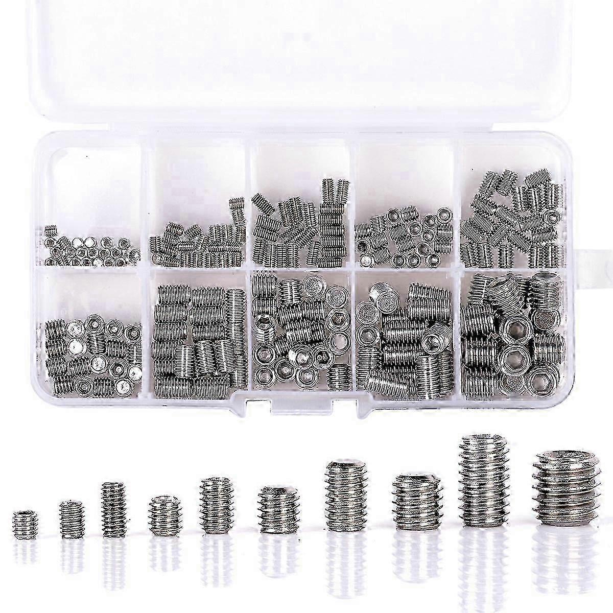 200Pcs 304 Stainless Steel Hex Socket Grub Screw Assortment Kit M3/M4/M5/M6/M8