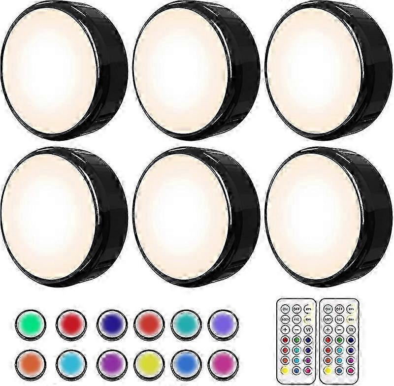 2025 Puck Lights, 16 Colors Changeable Led Push Lights Battery Operated Upgrade Black Dimmable Under Cabinet Lighting Wireless Under Counter Light, Wi