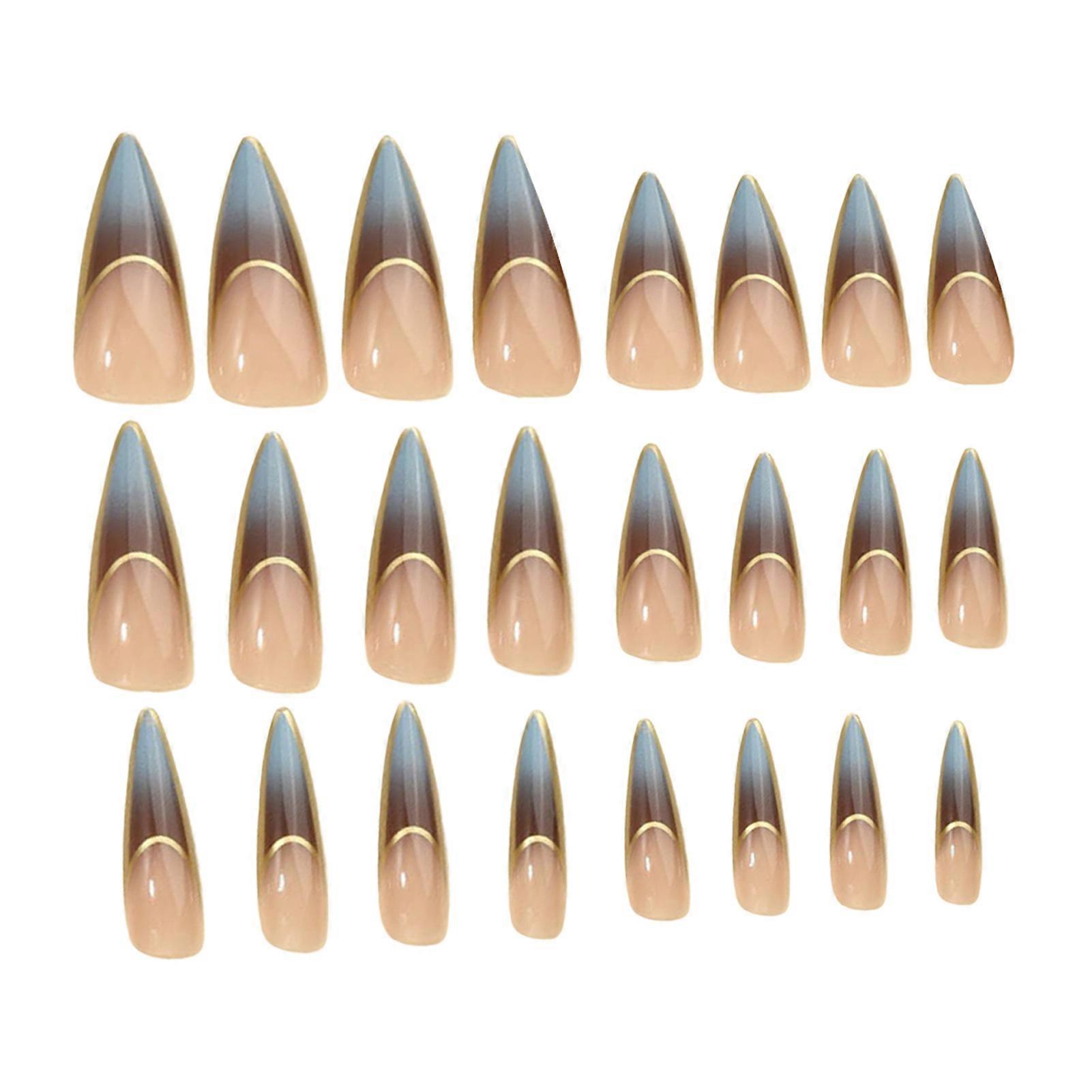 24Pcs Fake Nails French Tip Gradient Fake Nails With Gold Trim Long Pointed