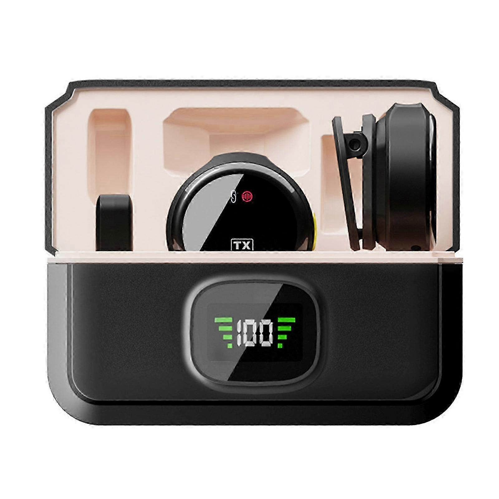 Features 1、【HighQuality Sound】: Our Wireless Clipon Microphone Set delivers crystalclear, highfidelity sound for your recordings and live performances. With a frequency response of up to 48kHz, it captures every nuance of your voice or instrument with exceptional clarity and detail. 2、【Seamless Wireless Connectivity】: Experience the freedom of wireless recording with our innovative technology. The Wireless Mics offer a reliable and stable 30meter transmission range, allowing you to move around freely without any loss in audio quality. Simply plug in the TypeC interface and enjoy instant pairing and zero latency performance. 3、【Compact, Comfortable & Versatile】: With its compact and lightweight design, this microphone is easy to wear without weighing down your collar. It features a buttonlike design with magnetic absorption or back clip, making it trendy and versatile. 4、【Intelligent Noise Reduction】: Our Mic utilizes intelligent noise reduction technology, ensuring that your voice stands out clearly even in noisy environments. It features multiple levels of noise reduction and reverb modes, allowing you to adapt to different recording situations such as interviews, live performances, and online teaching. Say goodbye to unwanted background noise and enjoy professionalquality recordings. 5、【Longlasting Battery Life】: With its builtin rechargeable battery and charging case, our Wireless Microphone provides an impressive battery life. A single charge can provide up to 7 hours of continuous recording, and when paired with the charging case, it can last up to 48 hours. Additionally, it only takes 5 minutes of charging to gain an hour of recording time, perfect for quick sessions or onthego recording. Specification Directivity: 2.4G wireless Omnidirectional Pickup: 3m Electronic capacitive head Sensitivity: 45db Signal to Noise Ratio: 75db Frequency Response: 20HZ20KHz Sampling Rate: 48K 24BIT Interface Type: TypeC Microphone Battery Capacity: 85mAh Charging Comparison Battery Capacity: 400mAh Microphone Size: 3 * 3 * 2cm/1.2 * 1.2 * 0.8inch Receiver Size: 4.1 * 2.5cm/1.6 * 1inch Charging Compartment Size: 8.5 * 4 * 5cm/3.3 * 1.6 * 2inch   Package List 2 * Microphonebr /1 * Receiverbr /1 * Charging Compartmentbr /1 * Charging Cablebr /1 * Instruction Manual Note: Due to the light and screen setting difference, the item's color may be slightly different from the pictures. Please allow slight dimension difference due to different manual measurement.