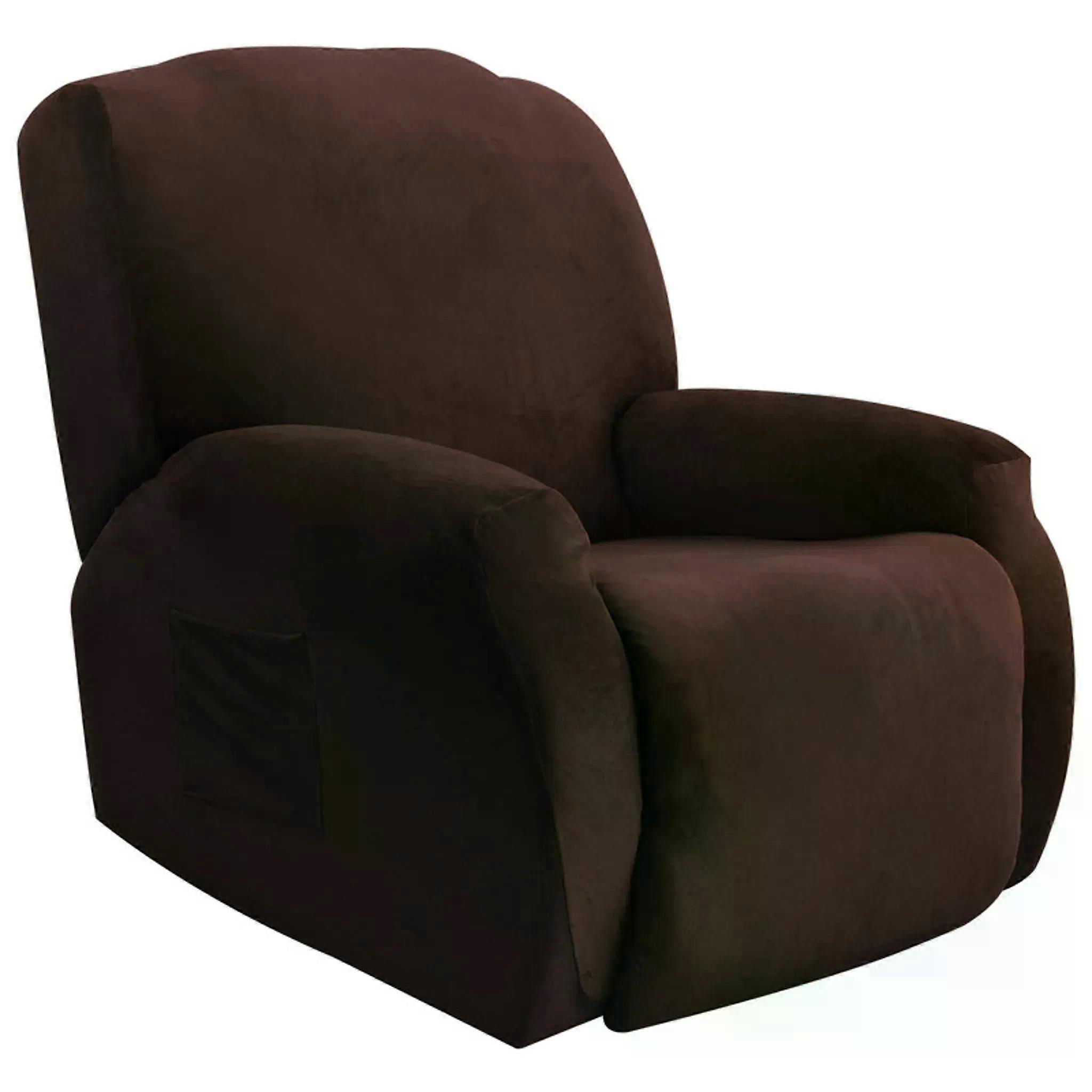 4 Stck Einfarbig Samt Elastisch Sesselbezug Braun