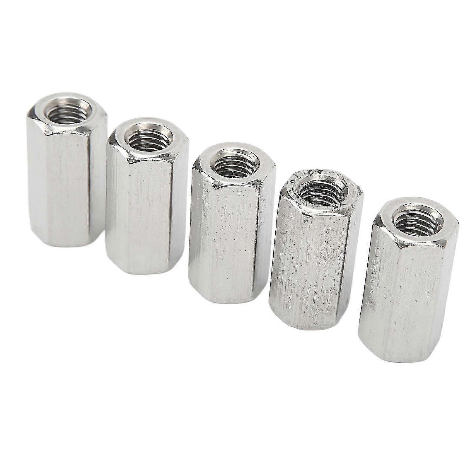 5PCS M10 Hex Coupling Nut Stainless Steel Rustproof Silver Connector Nut for Bolts Studs