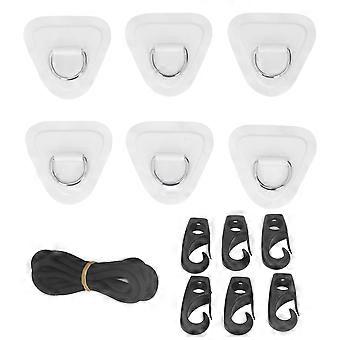 6Pcs PVC D Ring Patch Elastic Rope Set Stainless Steel D Ring Patch Bungee Cord Set for Inflatable Boats Canoes Kayaks Surfboards Vertical Paddle Boar