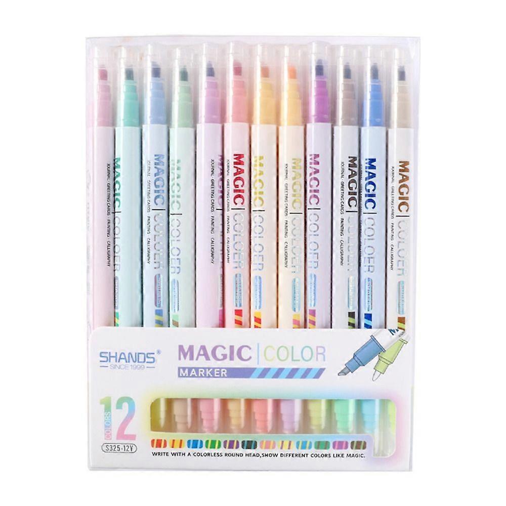 6/12Pcs Double-ended Highlighter Pen Set DIY Notes Painting Art Marker Color marker pen Magic Color Changing Fluorescent Pen
