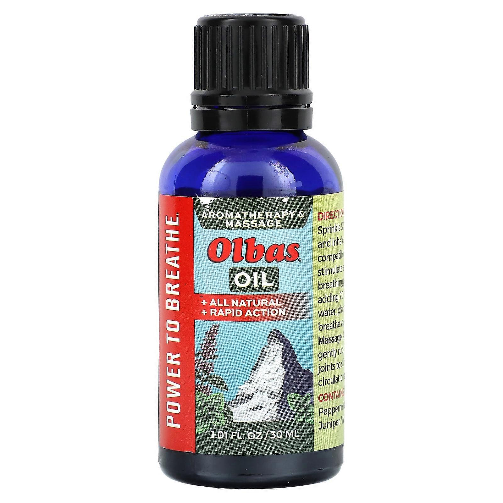 Aromatherapy & MassageAll Natural Rapid ActionPure Plant OilsPower BreatheCruelty-Free Swiss Formula Originating in Basel Switzerland, Olbas Oil has provided soothing relief to many for over 100 years. A truly unique and synergistic blend of six all-natural essential oils, Olbas has exceptional value in maintaining wellness. Benefits: Inhaling Olbas vapors delivers invigorating and soothing sensations to your nasal and bronchial areas, giving you power to breathe. Applied to the body, it stimulates circulation at the surface of your skin, bringing comfort to tired muscles and joints. All Natural Essential Oil Formula Penetrating VaporsStimulate & Enhance Breathing PassagesSoothe Tired Muscles