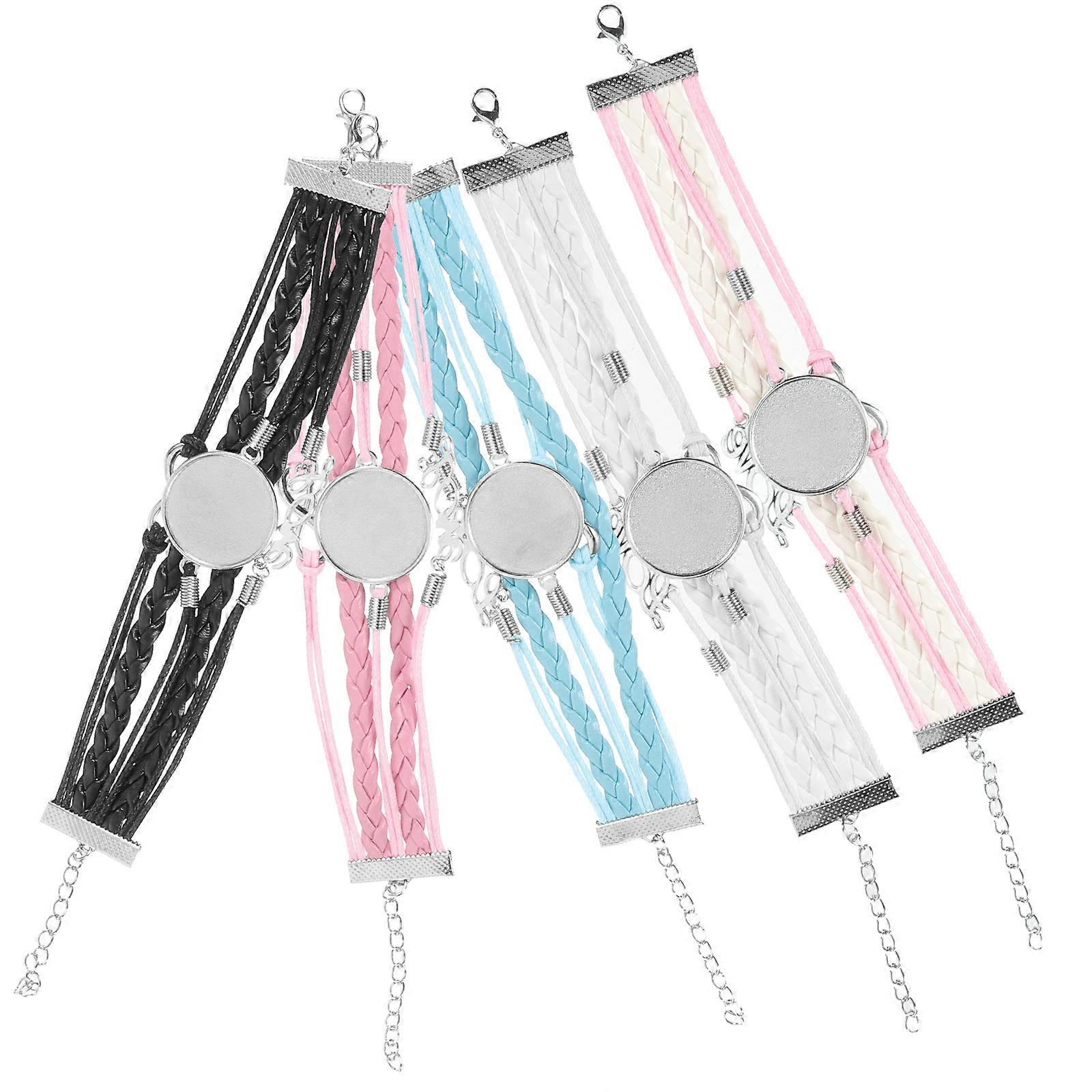 Bezel Cuff Bracelet Blank Heat Transfer Sublimation Bezel Bracelets Blanks Round Blank Bezel Bangles Pink 5Pcs