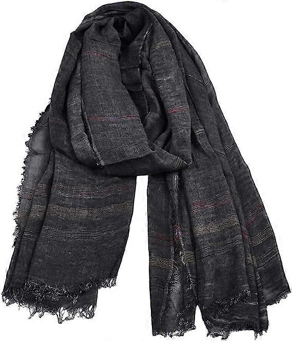Unisex Soft Striped Scarf with Tassels Cotton Linen Solid Color Scarves 75 x 35 inch