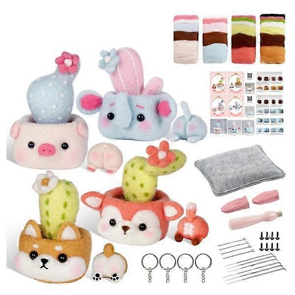 Cactus Flower Pot Needle Felting Kits for Beginners, Needle Felting Kit, Felt Needles, Foam Pad, Felt Cloth