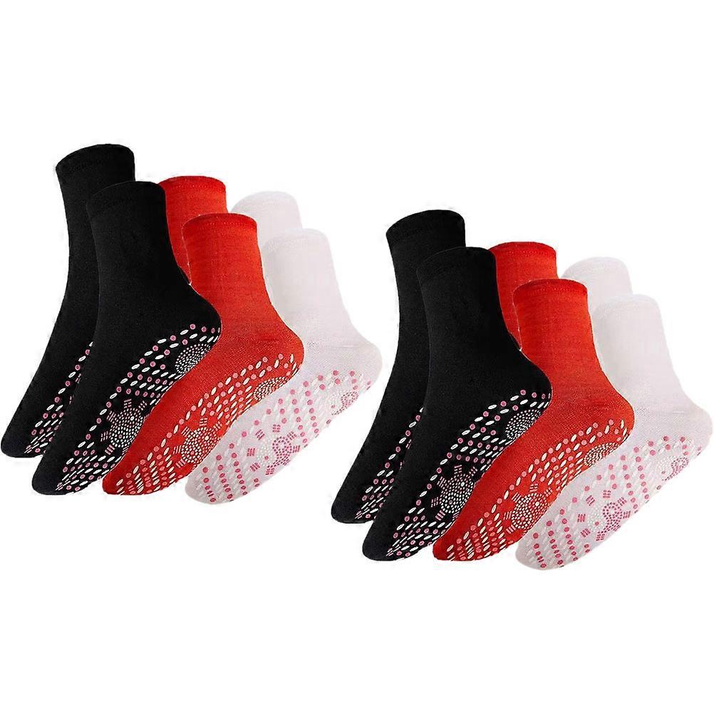 The Self-heated Sock, made of high-grade material, is practical and durable for use. The bottom of the socks to warm and relax your feet in cold weather. Great to relieve leg pain and fatigue, regulate your nervous system and provide you with foot massage care. Suitable for skiing, climbing, skating, cycling in cold winter. Features -Color:Assorted Color -Material:Cotton -Size:28.00X9.50X0.20cm/11.00X3.73X0.08in - Perfect for hiking, skiing, winter fishing, jogging, winter hunting, biking, hiking, and snow shoveling, etc. It will bring you warmth in the cold winter. - The bottom of the socks has a self heat that heats itself to warm and relax your feet in cold weather. - For stimulating acupuncture points. Great for daily use. Relieve the food pain and fatigue, promoting the blood circulation. - Convenient to store and portable to take outside for travel. Suitable for skiing, climbing, skating, cycling in cold winter. - You can wear it and the elastic socks can make you feel comfortable to wear it, and the elastic design makes this sock different from others. Package list: x pairs of Winter Socks