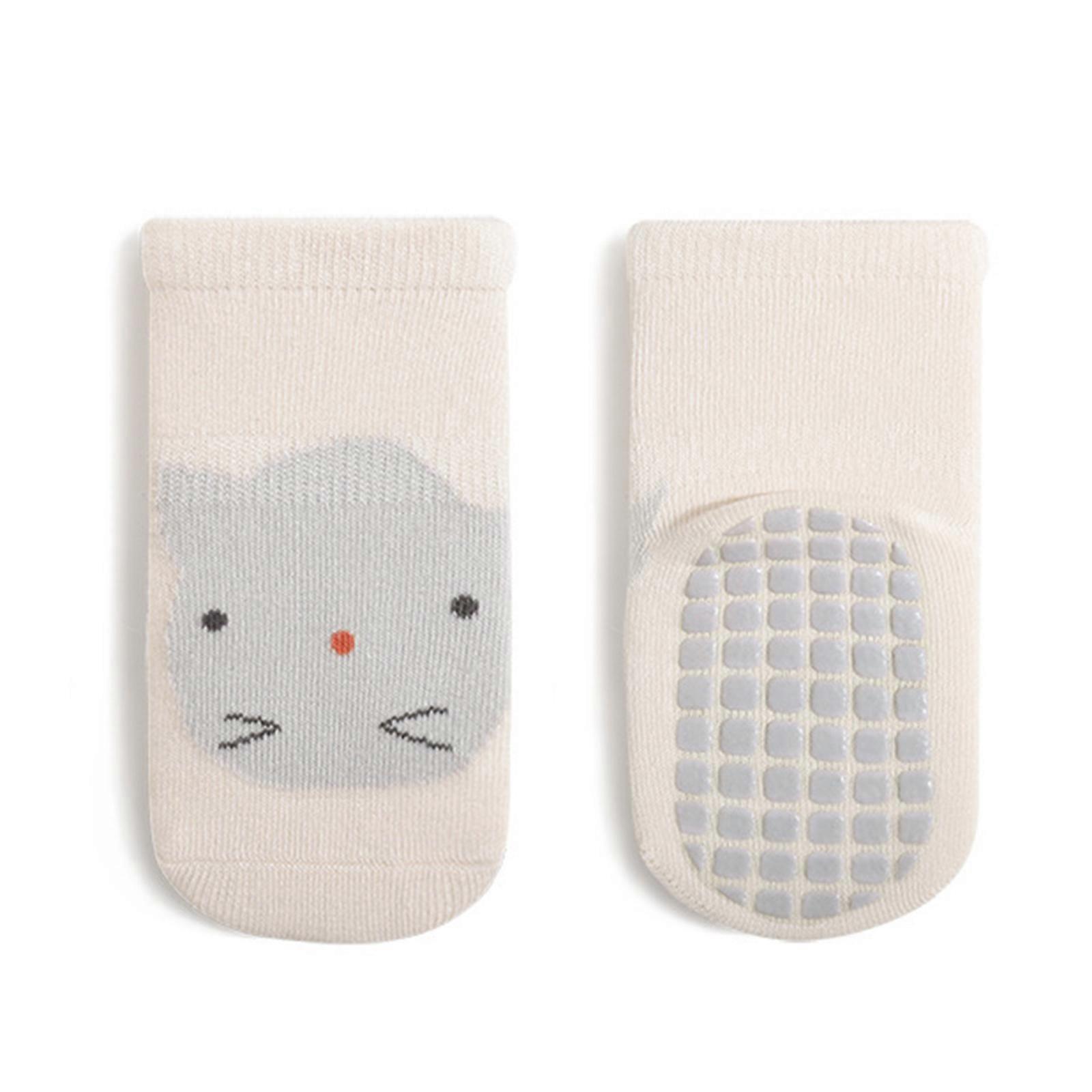 Infant Socks with Anti Slip Bottom Cute Animal Designed Floor Socks Breathable Cotton Socks for Baby Learning to Walk Beige S