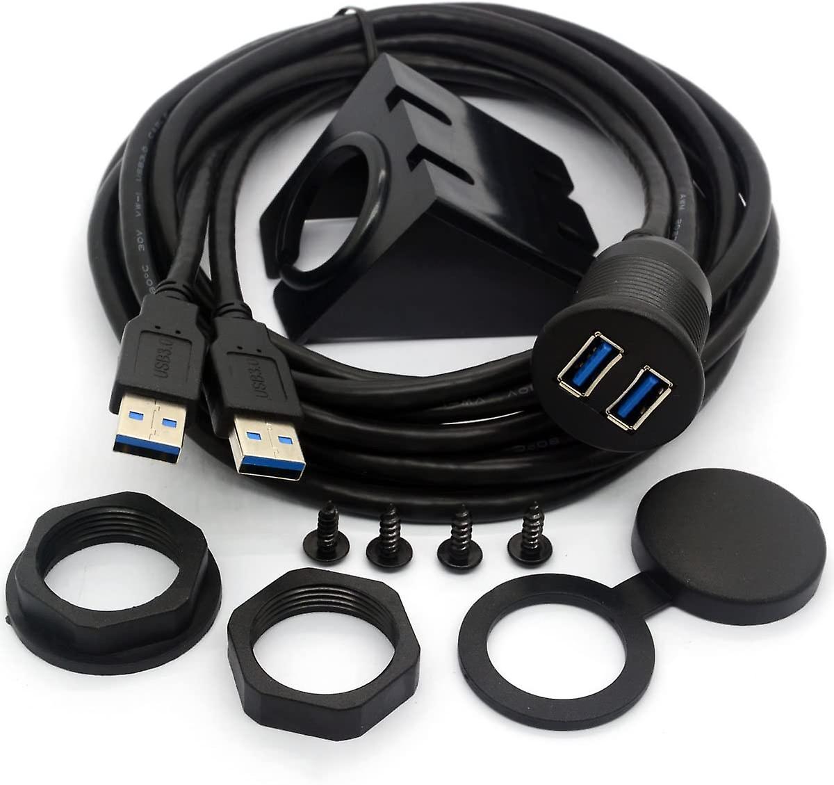 Super Speed 2 port USB 3.0 extension mount cable leads for car, boat, marine, bike, motorcycle and others - Dual USB male to dual USB female dash flush mount waterproof cable, speeded USB 3.0 data transfer rate at up to 5 Gbps, 10x faster than USB 2.0 extension mount cable