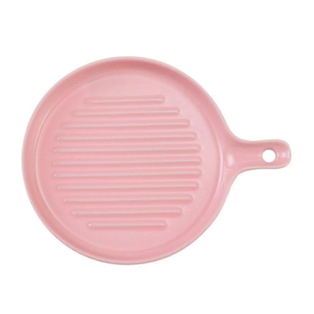 Ceramic Serving Plate Tableware for Dessert Serving Pink Material with Handle Baking 1Pcs