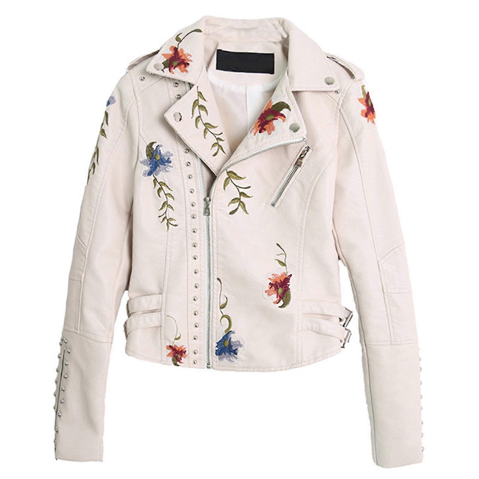 Floral Night Leather Jacket Women's Faux Leather Jackets Casual Short Coat For Spring Fall And