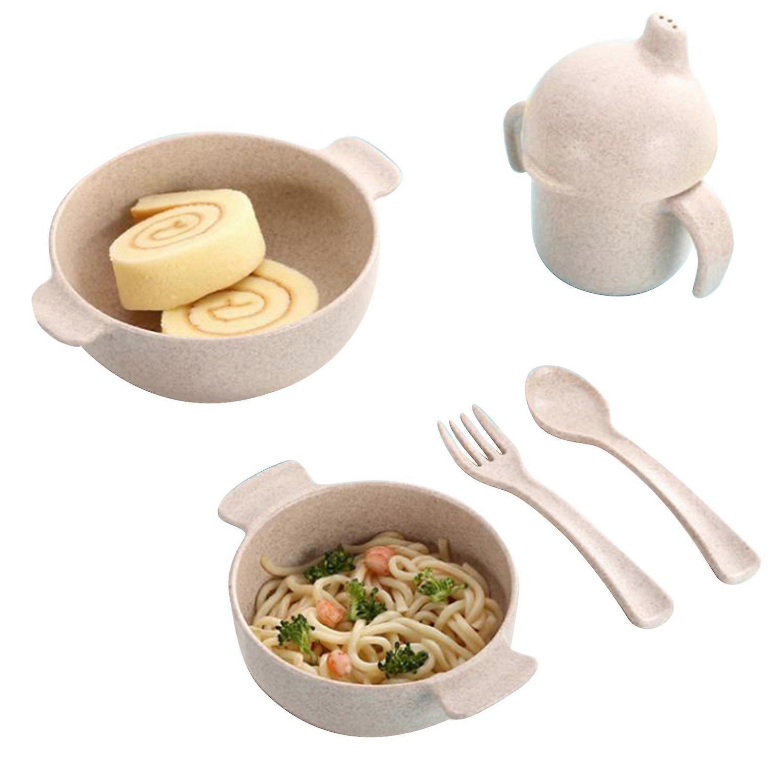 Children Tableware Set Wheat Fiber Bowl Sippy Cup Fork Spoon