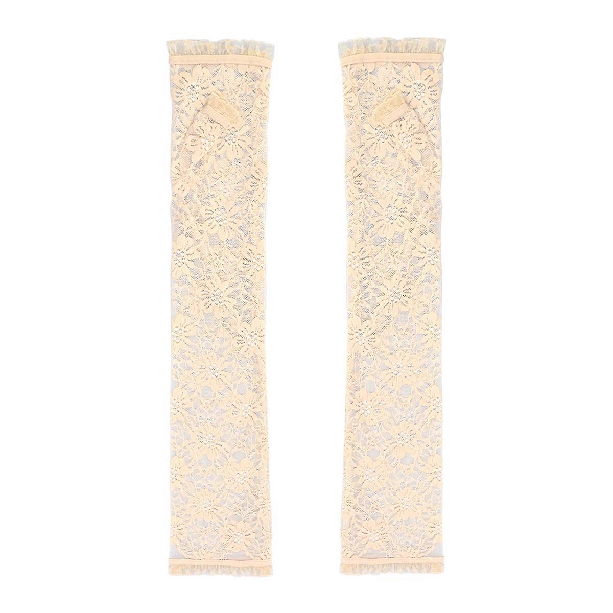 Beige Lace Elbow Sleeves for Sun Protection 3Pairs Breathable Arm Covers