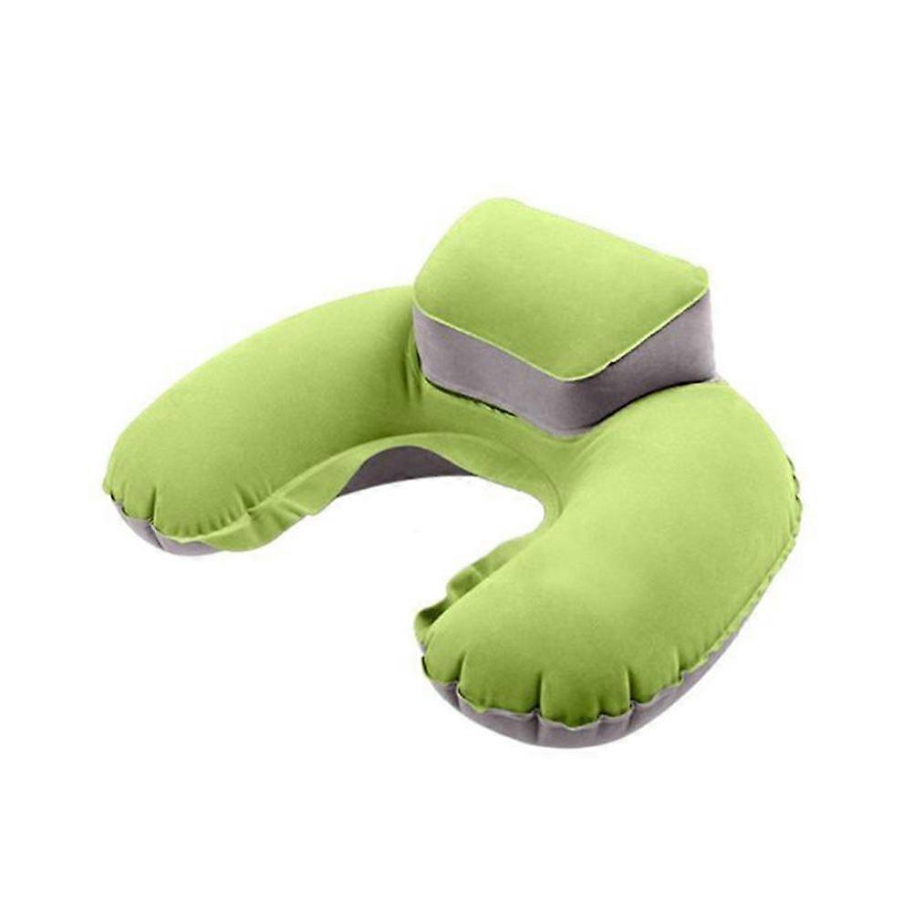 Useful Neck Air Blow Up U Shape Pillow Inflatable Cushion for Outdoor Traveling (Green)