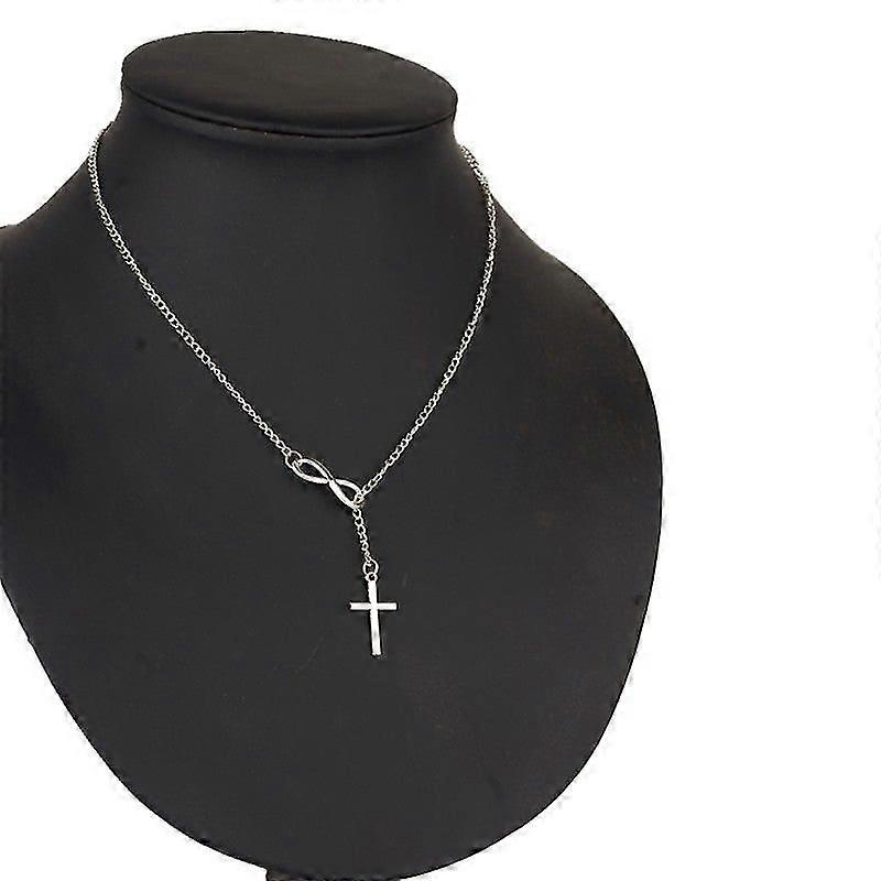 Silver Infinity Cross Lariat Necklace