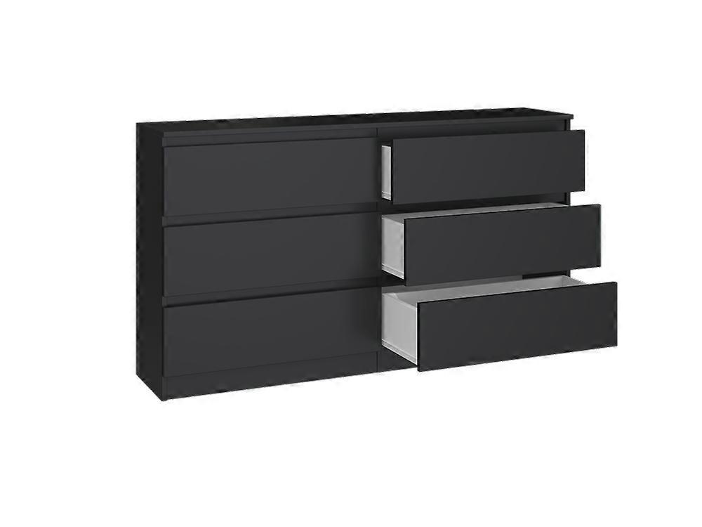 MODERN CHEST OF DRAWERS SERIES: MALWA MODEL: M6 140CM COLOR: BLACK Minimalist design Handleless drawer fronts ensure comfortable use and emphasize the modernist character of the interior Very good quality of workmanship New type of fittings, smooth sides without end caps Polish manufacturer This modern chest of drawers from the MALWA collection is a functional and spacious piece of furniture that will brighten up your bedroom, living room, or child's room. Its universal design will meet the expectations of anyone who appreciates a combination of simplicity and elegance.