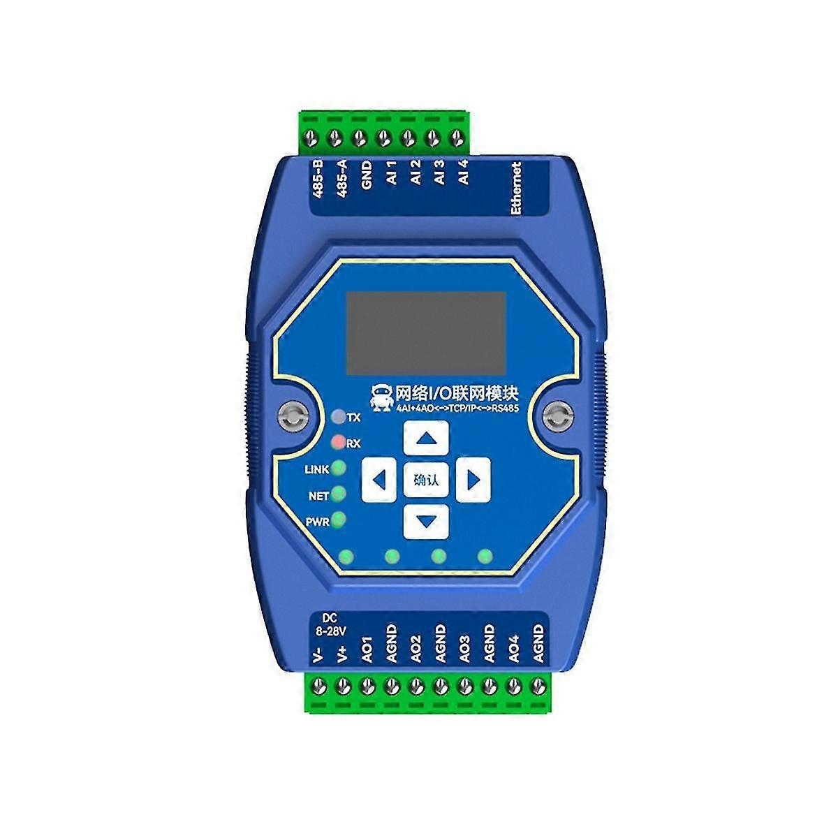 4 Way Remote Acquisition Control Modbus Tcp Ip Networking Module 4ai+4ao 0-20ma Rj45 Rs485 Modbus Gateway Oled Display