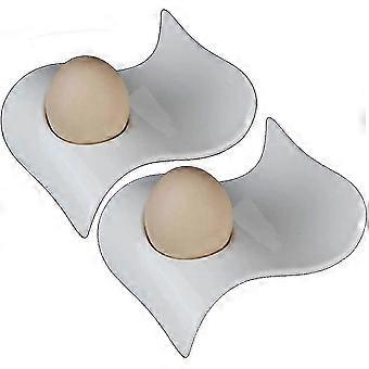 Juego de taza de huevo de porcelana blanca de 2 elegantes juegos de desayuno de cerámica de 2 piezas Wave 2