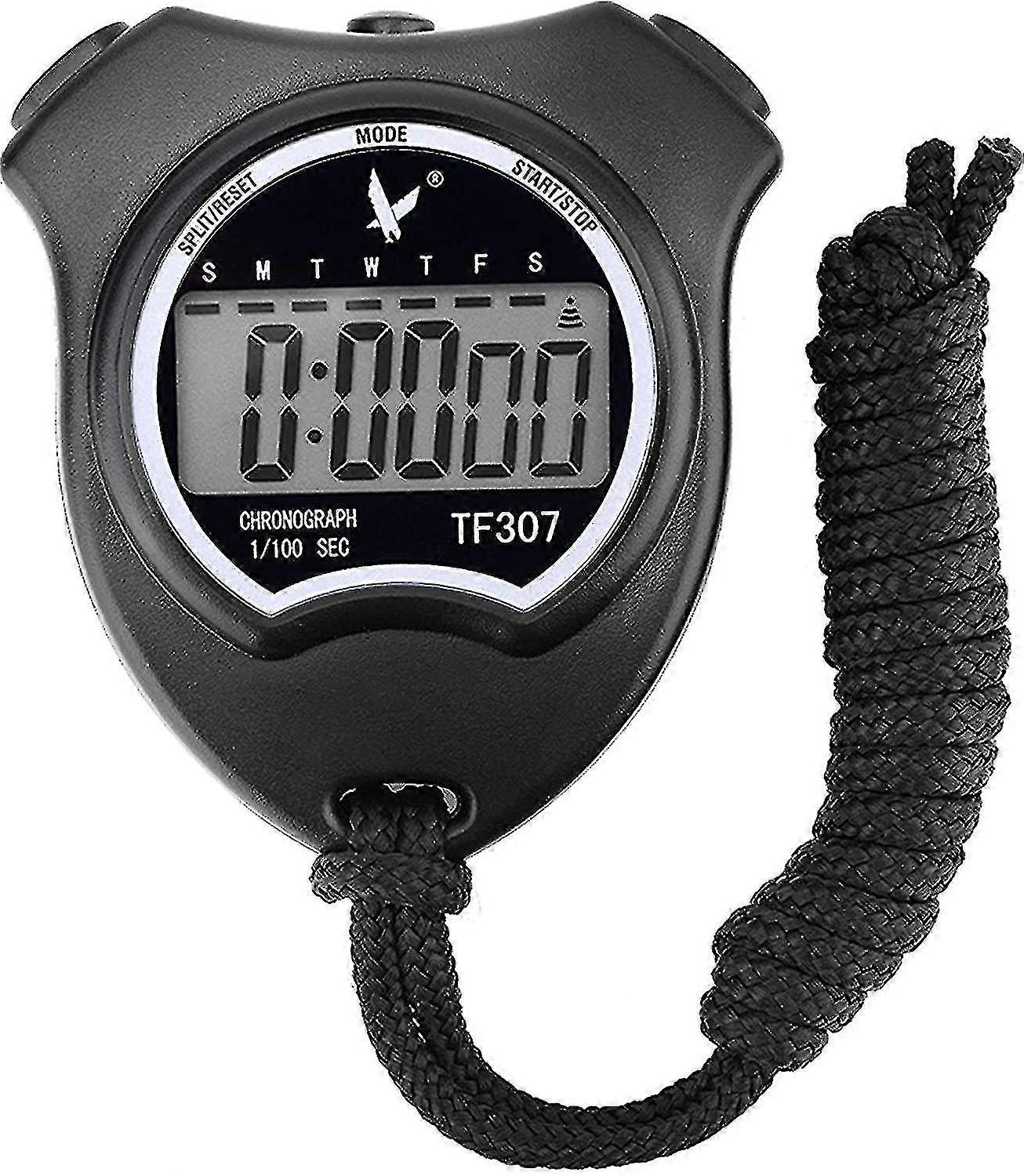 Description Stopwatch: sports watch with 2 memory functions, waterproof and large LCD screen Multi-function: The stopwatch is multi-function, can be used as a stopwatch, clock, chronograph and , calendar with week, month and date Time mode: 12/24 hour time options, clock, daily alarm and timekeeping Timing unit: within 30 minutes, the timing unit is 1/100 second, and the timing unit for more than 30 minutes is second Reminder: There is a protective film on the stopwatch display, please tear it off before use