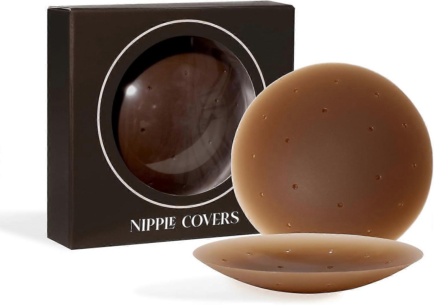 Breathable Nipple Covers for Women Sticky Adhesive Silicone Nipple Pasties Reusable Nipple Cover Cocoa Medium (Fits DD-H Cups)