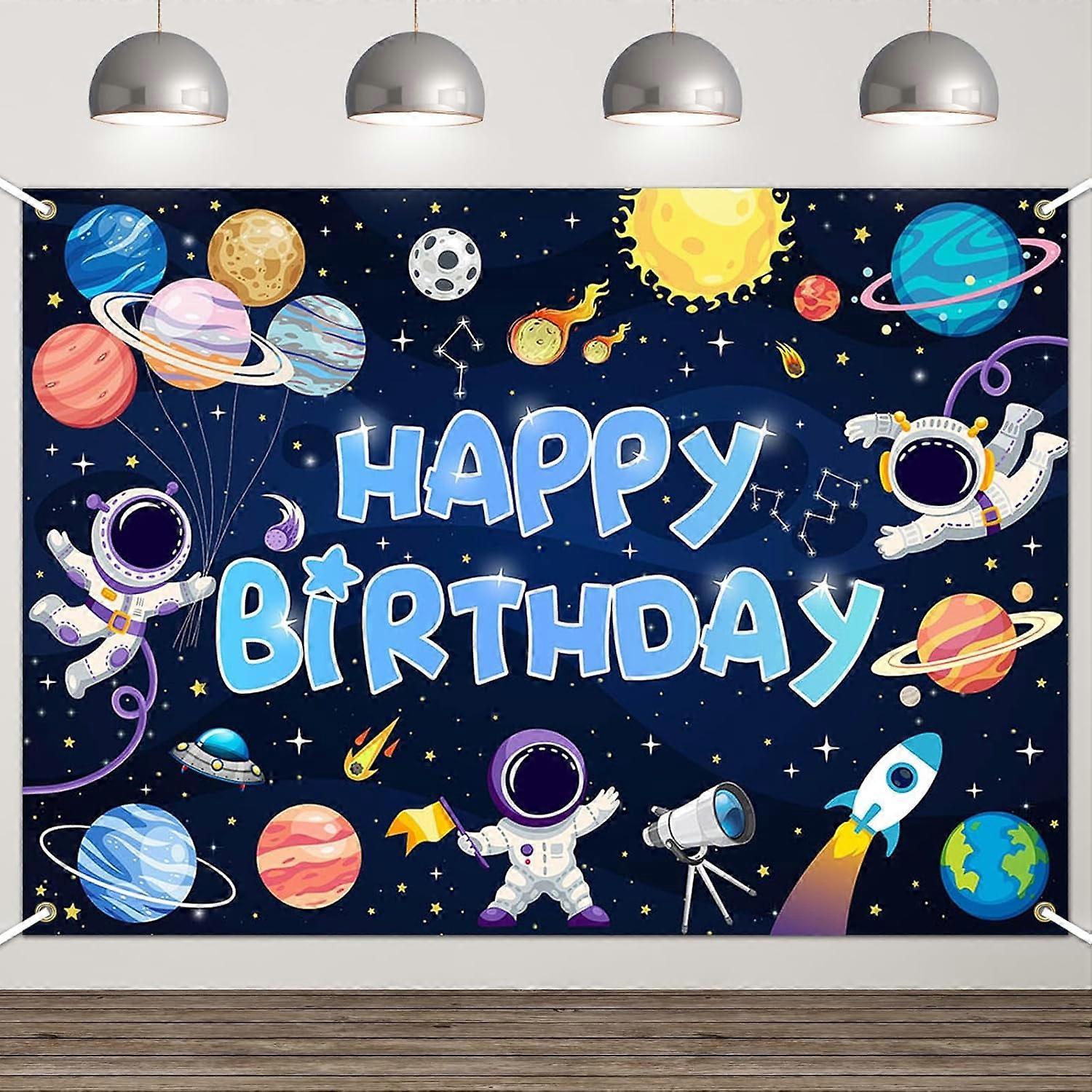 Custom Space Happy Birthday Backdrop for Boys, Astronaut Rocket Outer Space Party Decor, Galaxy Planet Photo Booth Banner (7x5ft)