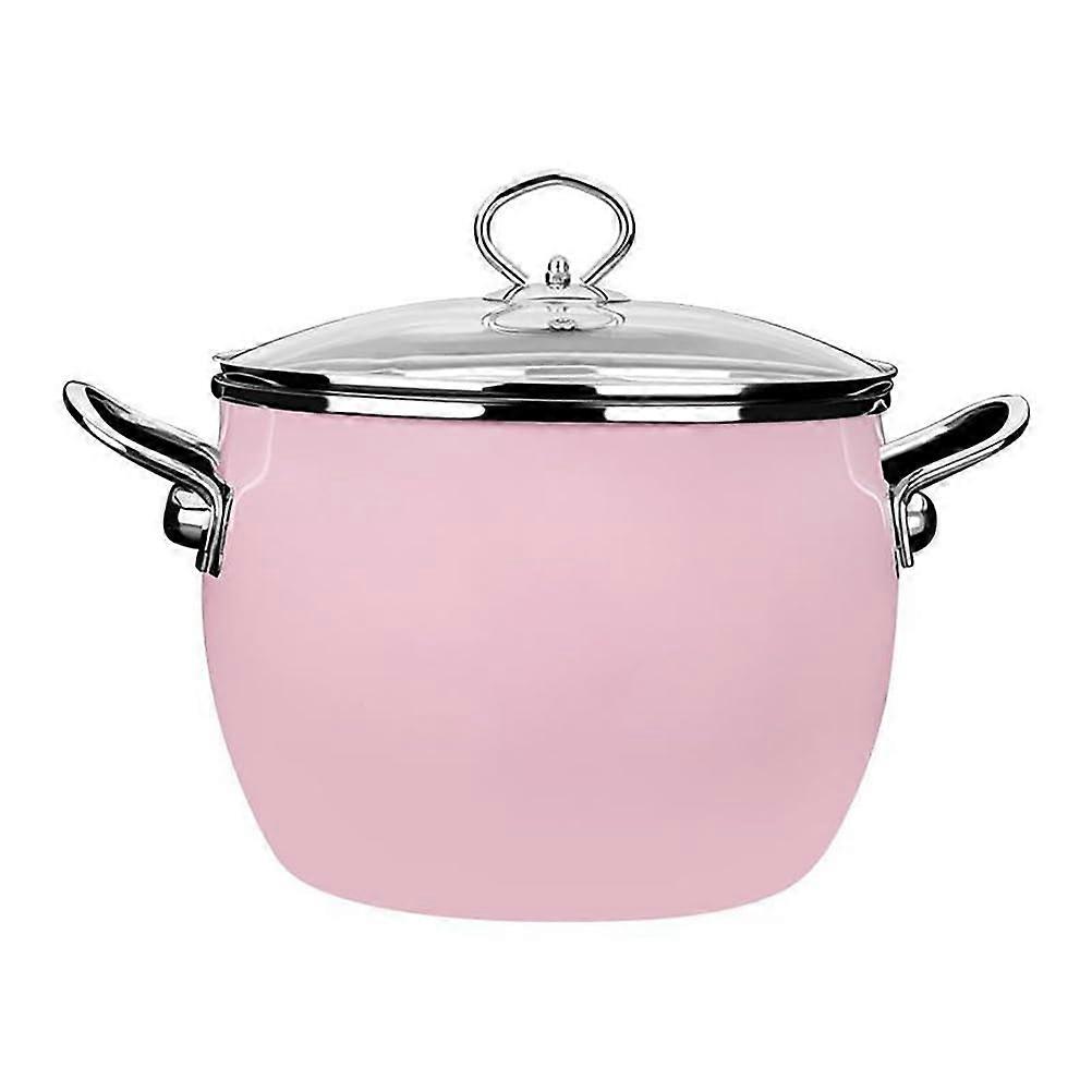 Enamel Stockpot with Lid for Induction and Gas Stove, Nonstick Large Soup Pot Pink