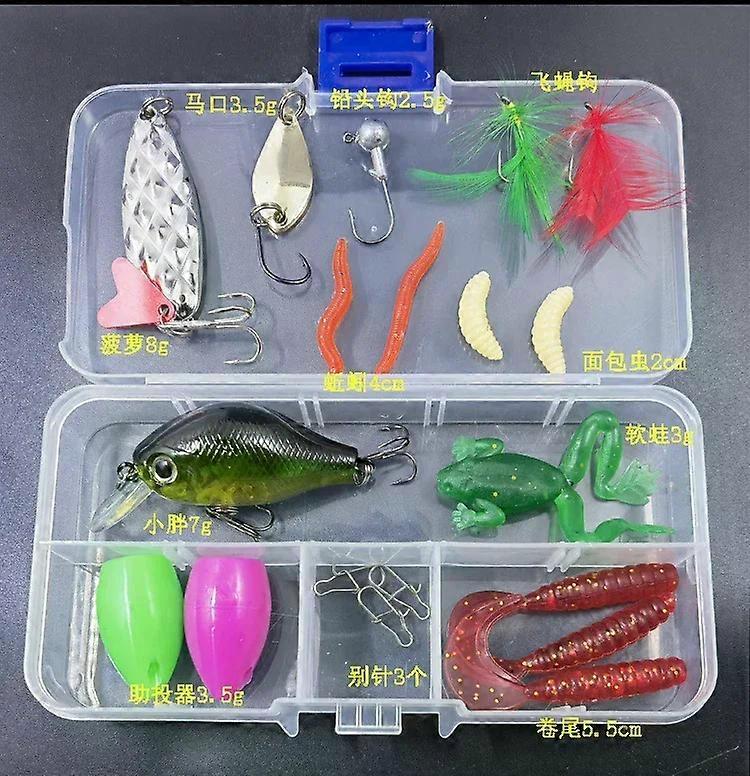 Ensemble de leurres de p��che mixtes, kit d'appats souples et durs, cuill��re �� gabarit en m��tal Minnow, accessoires de mat��riel avec bo?te po