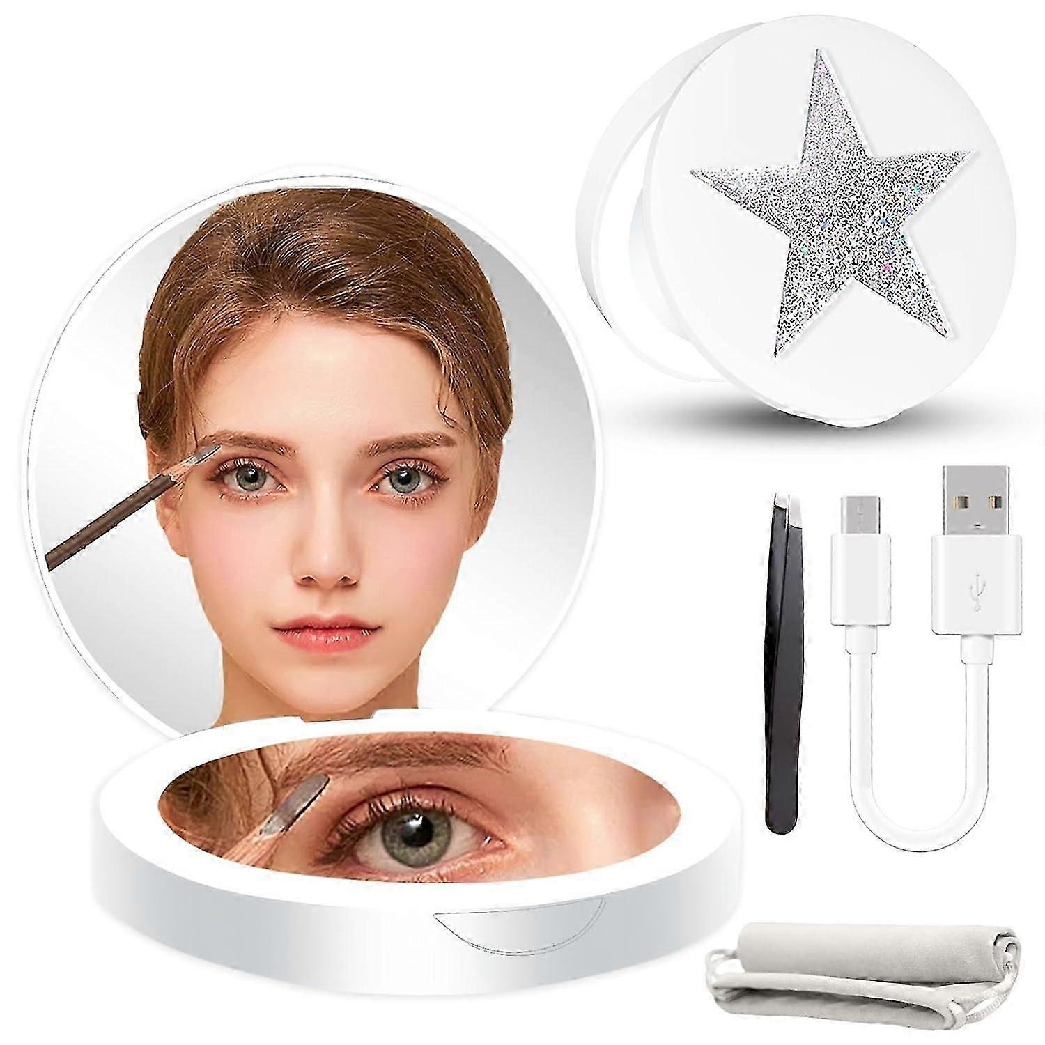 Compact Mirror with LED light,1x/10x Magnifying Rechargeable Mirror