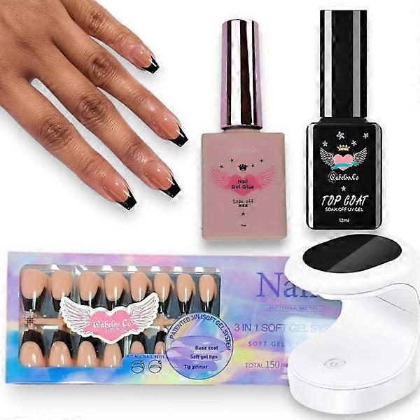 False Nails Gel Press on Starter Kit Black Coffin Black Kit