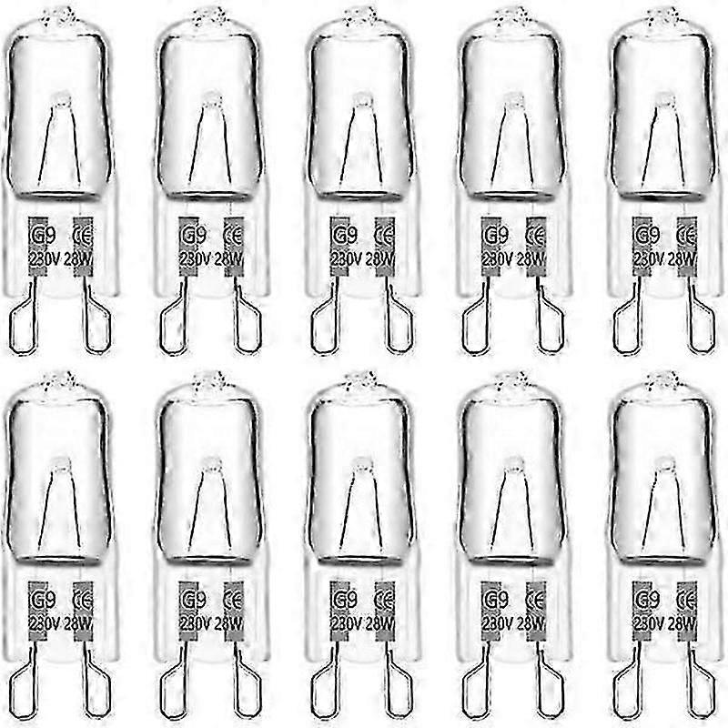360 beam angle AC 230V, 370LM 2700K warm white, with glass body, G9 bulbs can shine in 360 beam angle. Premium quality 2000 hours life, no lead or mercury. EASY TO USE Standard G9 halogen bulbs, lights up instantly without delay. No buzzing or buzzing. Dimmable G9 halogen lamps are dimmable, flicker-free, CRI80, no UV or IR radiation, better protect your eyes. Number of objects 10 Color warm white Material glass Volt 230 Volt (AC) Special functions Dimmable Light angle 360 degrees Connection type Electric cable Type of plug Halogen lamp Type of base G9 Luminous flux 370 lm Power 28 watts Temperature/color rendering 2700 Kelvin Color rendering index (CRI) 80.00 Average lifetime 2000 hours