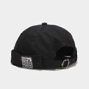 Solid Color Toque Cap With Adjustable Docker Cotton Cap Black