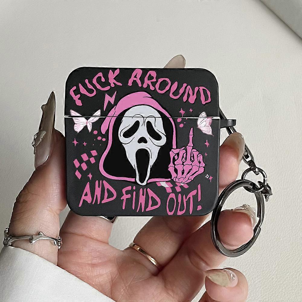 Gothic Scream Ghost Skull Earphone Case for AirPods Pro2, Pro, AirPods 1/2/3/4 Stylish Shockproof Headphone Case with Keychain