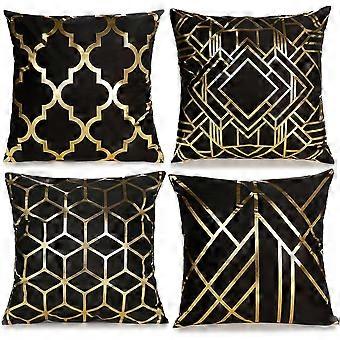 (Negro/Dorado) Juego de 4 fundas de cojín (sin cojín), geométrico moderno con cremallera invisible, juego de primos de decoración para el hogar, sofá de dormitorio de salón, silla