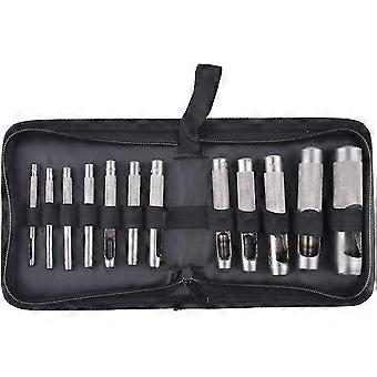 12 piezas Set Hollow Punch Herramienta de corte de cuero de servicio pesado con kit de cremallera para cinturón, goma, tarjeta, sellos, plástico, papel, correa de reloj