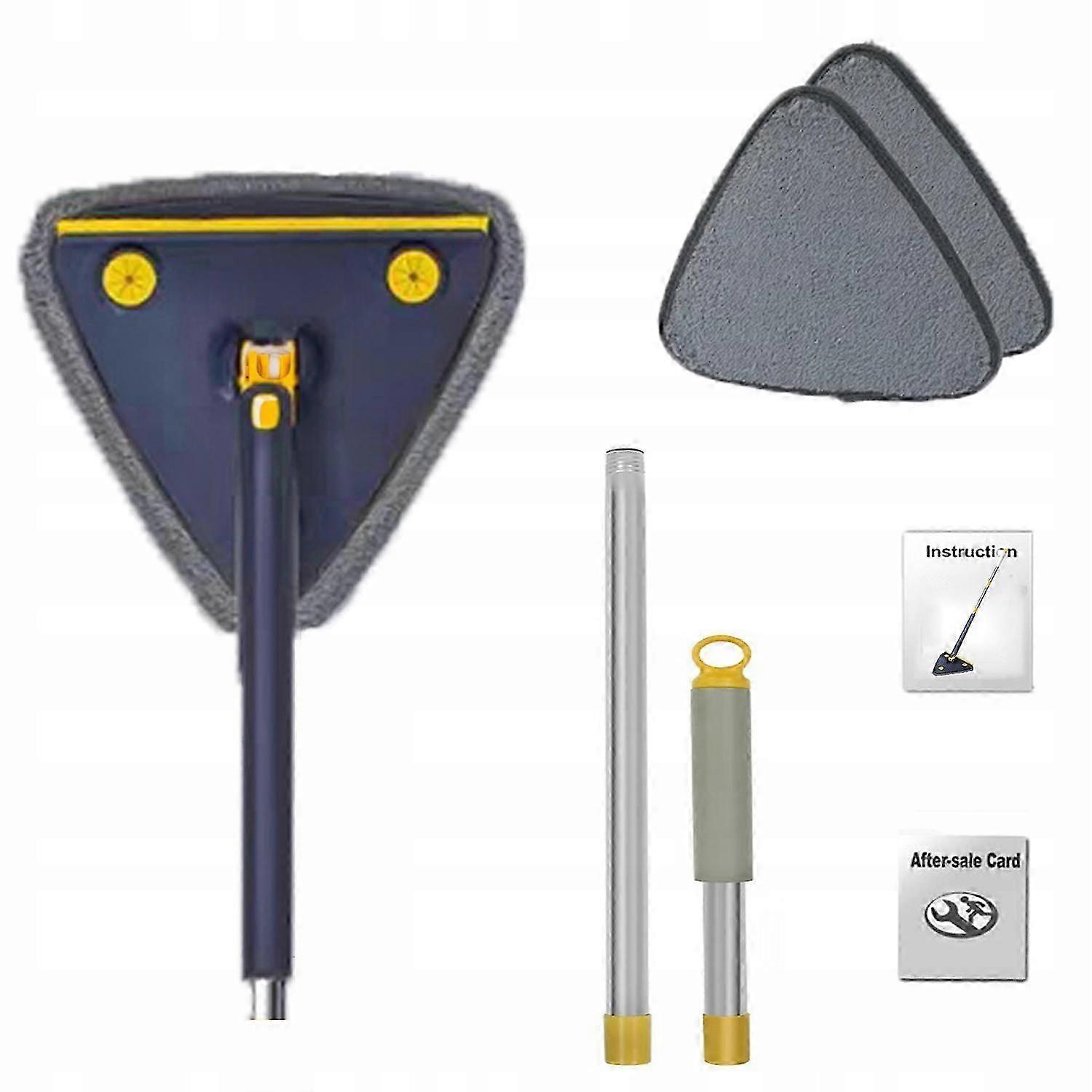 **Professional Floor Cleaning Solution, Multi-Functional Wall Mop by Hooha is Your First Choice** The Hooha triangular mop is designed with a 360 rotating mop head and a triangular mop, making it easier to clean and reach dead corners such as sofas, beds, wall corners, ceiling corners, window corners, and more. It is a true professional floor cleaning solution that makes cleaning easier and faster. It works quickly and efficiently and is the perfect solution for daily and weekly floor cleaning, removing dust, pet hair, dirt, debris, and more. It can be used not only on floors but also in living rooms, bedrooms, kitchens, bathrooms, public areas, windows, walls, cars, baseboards, ceilings, shower cabins, kitchen countertops, and showers. **Product Details** Technical Specifications: - Size: 130*27cm / 51.18*10.62 inches - Material: PP/Reinforced Stainless Steel/Silicone - Mop Cleaning Material: Microfiber - Color: Blue - Dehydration Efficiency: 81%-90% - Package Includes: - Cleaning Mop x 1 - Cleaning Cloth x 2 - Squeegee x 1 - User Manual x 1 - After-Sales Card x 1 **Unique 360 Design** The 360 rotating mop head allows you to clean without leaving any dust in dead corners, easily solving stubborn dust in corners, ceilings, and windows. **Slidable Automatic Wringing** The telescopic scrub brush has an automatic water wringing function, protecting your hands and making it easy to use. After cleaning, simply throw the pads into the washing machine. Note: When dehydrating, the mop head should be at a 90 angle to the handle, push and pull the handle to fully dehydrate. **Wet and Dry Mopping** The 2-in-1 wall cleaning mops are designed for dual-purpose scrubbing, one side is wet and dry, and the other side removes water stains, ideal for both wet and dry cleaning. **Silicone Scraper** The silicone scraper is soft and durable, does not damage glass or floors, and quickly removes water. **Highly Absorbent and Easy to Clean Cloth** The high-quality fiber cloth is very absorbent and easy to clean. Simple to install and remove, it dries quickly after cleaning and can be reused multiple times. **Long Handle and Dense Poles, 127 cm Cleaning Height** The wall cleaning tool with a long handle comes with a fibrous material and stainless steel handle, making this wall cleaning mop easy to clean every corner of the room without a ladder or bending. It allows easy access to dusty areas, avoiding back and waist pain, as well as potential hazards. **Additional Clip for Cleaning Cloth** Our cleaning mop includes a 3-part clip for deep dust or water wiping when needed during home cleaning. The three clips can hold towels, paper towels, etc., for floor or window cleaning. You can also pour disinfectant solutions into small holes for thorough cleaning. A truly professional floor cleaning solution! **Large Cleaning Area** The multi-functional triangular mop by Hooha is specially designed with a large cleaning cloth that helps in quick cleaning, allowing you to clean with less effort. **Wall-Mountable** The Hooha Multi-Purpose Triangle Mop has a hole at the top of the handle for wall mounting, allowing for storage without taking up additional space. **Wide Application** It can clean all types of floors such as marble, wood, tiles, etc. Multiple usage scenarios, it can clean windows, kitchens, bathrooms, walls, cabinets, bathtubs, cars, and much more, depending on your needs.