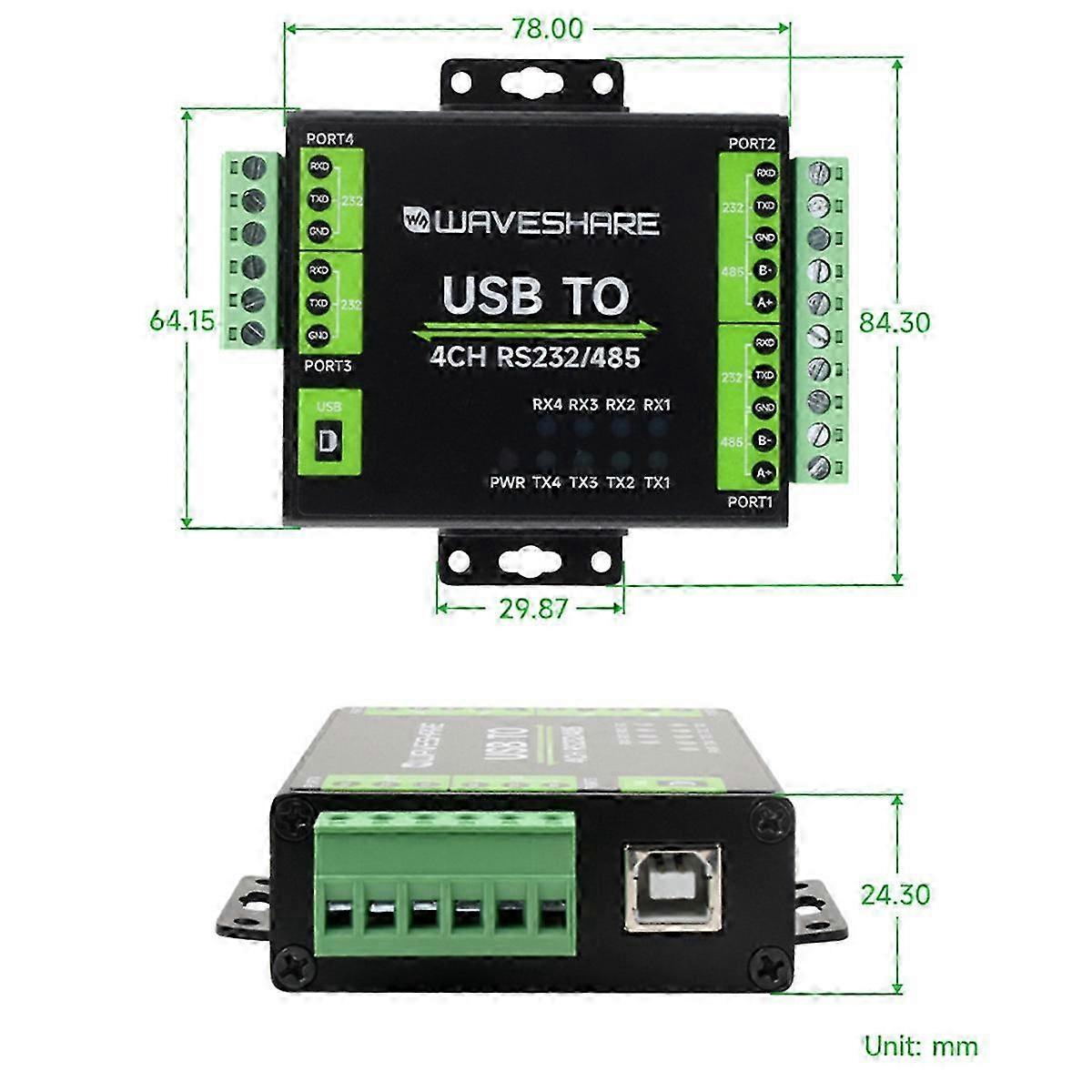 Industrial Isolation FT4232HL USB to RS232/485 Interface Converter for Linux & Android 8.1/10/8/7