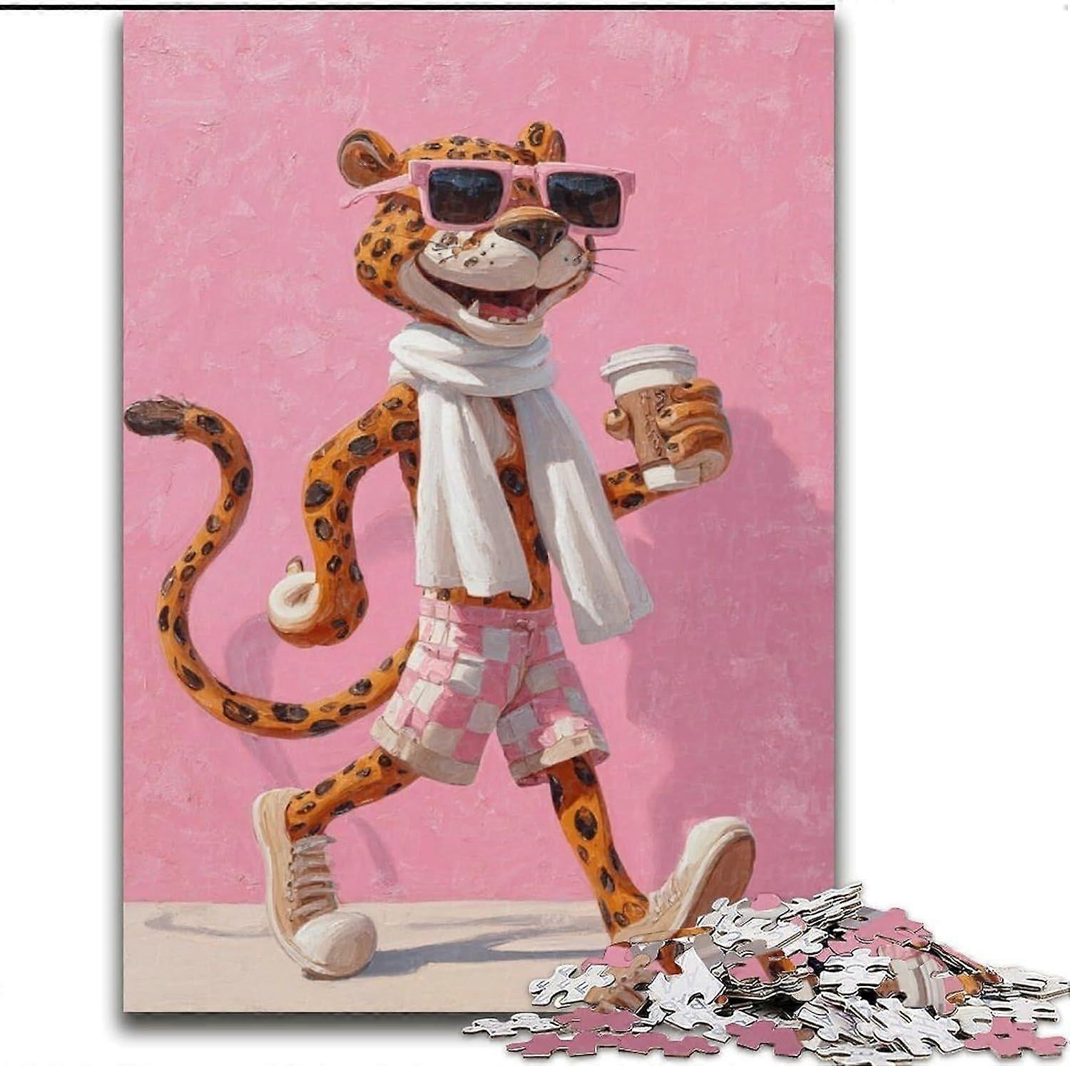 Jigsaw Puzzles for Adults Gifts Leopard Drinking Coffee Adult Puzzles,Staycation Kill Time with Fully Interlocking Randomly Shaped Pieces - PT 4730