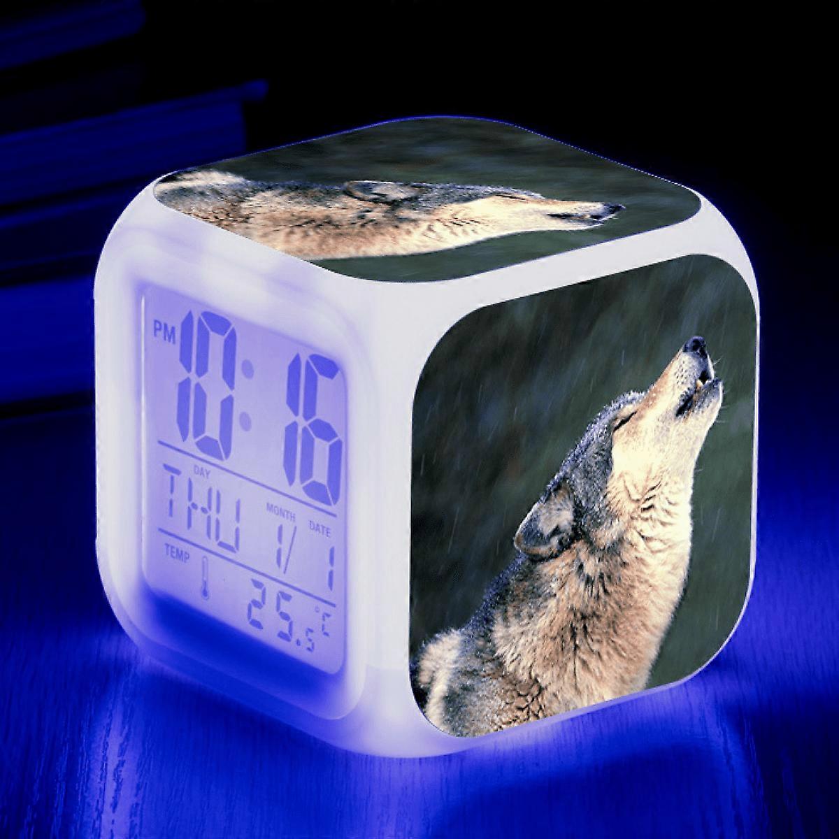 LED Alarm Clock with Wolf Pattern - Glowing Colorful Digital Table Clock, Compatible with HTNL#1002, Gift for Kids, Adults